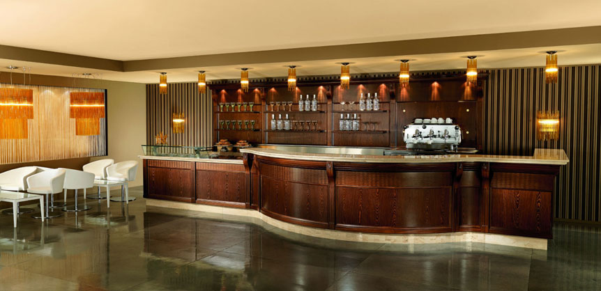 Šank klasičnog izgleda, odlučnog i elegantnog stila, s važnim i karakterističnim detaljima:cvjetni motivi (u boji drva, zlata ili jantara) uljepšavaju fasadu i pozadinu polica.