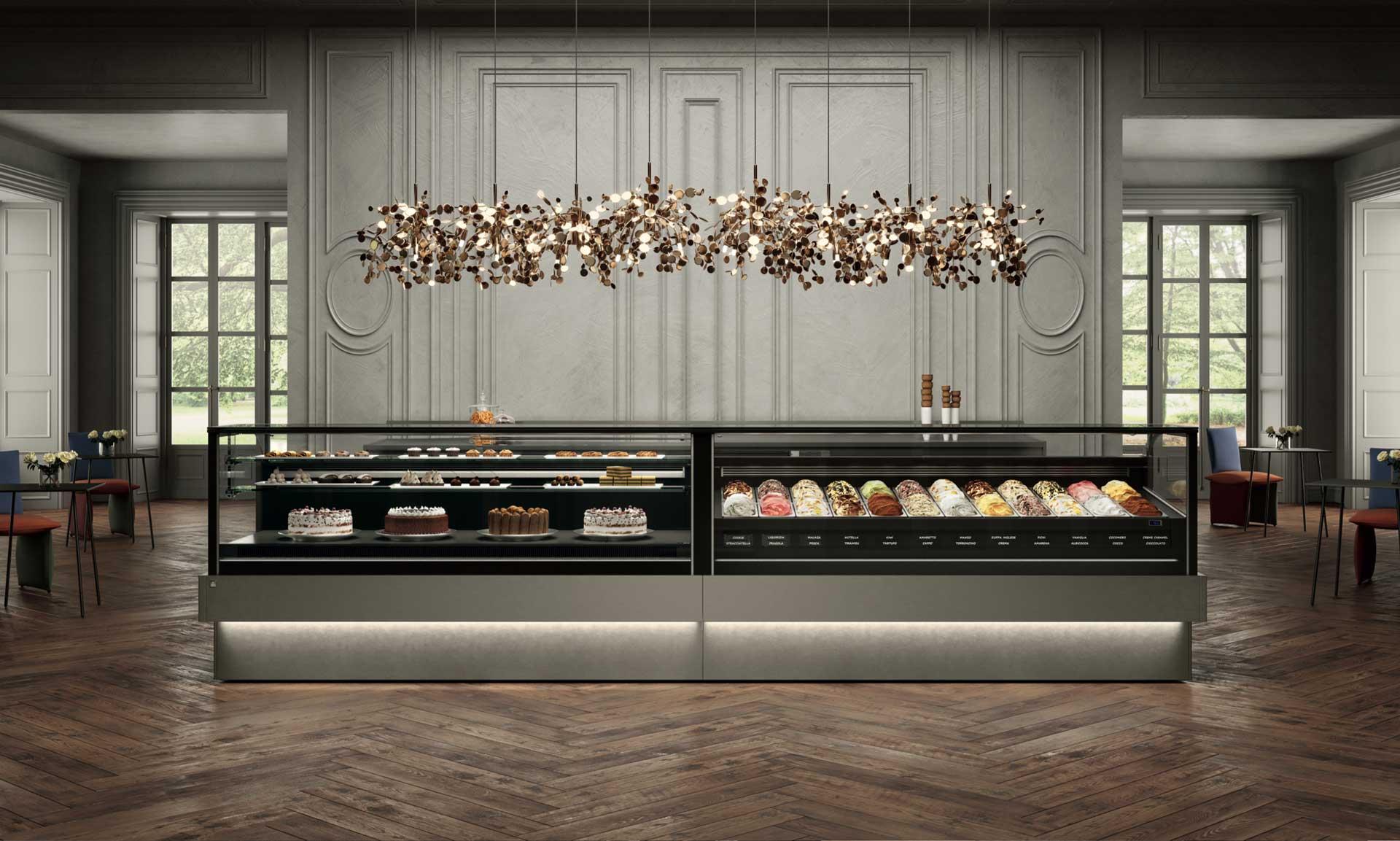Skriveni dovod zraka fokus stavlja na sladoled i kolače, Gelato i Pecivo, koji izgledaju kao da lebde, te su savršeno vidljivi iz bilo kojeg kuta. Opremljena sa 3 x 4000K LED izvora svjetla koji dodatno naglašavaju izložene proizvode. Izgled, okus i kvaliteta izloženih proizvoda zadržava sve svoje izvorne karakteristike čak i u najkritičnijim uvjetima okoline po pitanju vrućine i vlage. Maksimalna higijena i sigurnost za hranu i potrošače, zahvaljujući polu-hermetičkom zatvaranju kliznih vrata i posebnom GHA® anodizirajućem tretmanu s antibakterijskim svojstvima. Osim što osigurava najbolje očuvanje sladoleda, HCS pametni sustav odmrzavanja štedi energiju inteligentnim smanjenjem broja odmrzavanja.