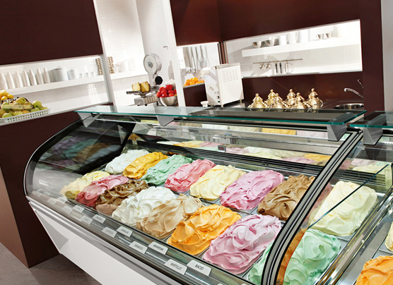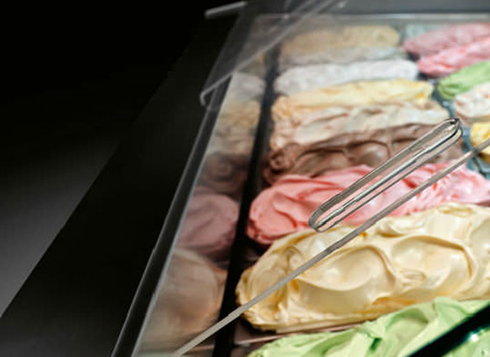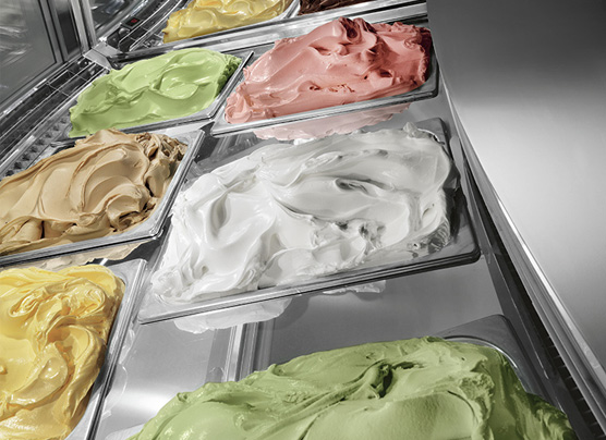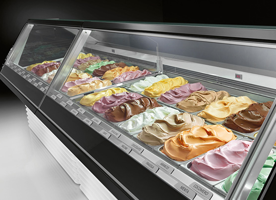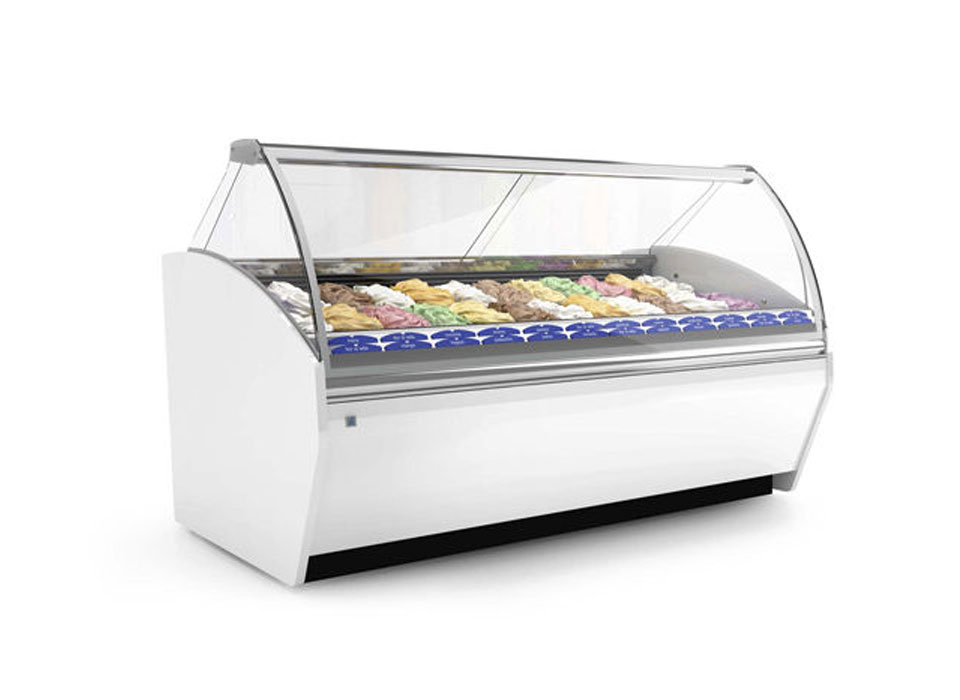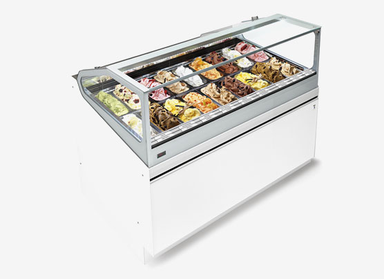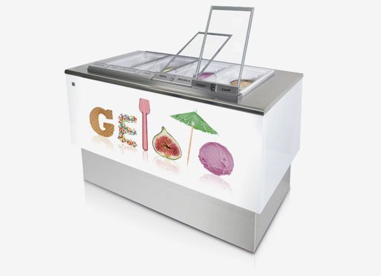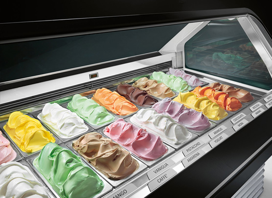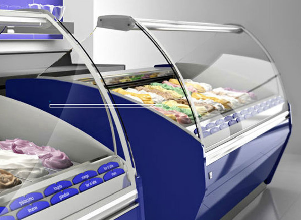- Za razliku od normalnog pozzetti pulta, sladoled se sada može vidjeti, zahvaljujući vratima od kaljenog i grijanog pirolitičkog stakla (za 2 ili 4 otvora) koja služe kao zaštitna barijera između kupca i sladoleda kada su otvorena. LED rasvjeta perimetar naglašava prirodne boje sladoleda.