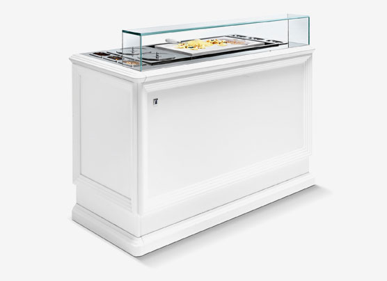 - Ušteda energije i poboljšani higijenski uvjeti zahvaljujući kombinaciji RDF sustavu + HCS sustavu (hermetičko zatvaranje) u dvije verzije: klizno kaljeno staklo s otvaranjem prema gore - može koristiti i kao baza za posluživanje ili s kliznim pleksiglas vratima;
