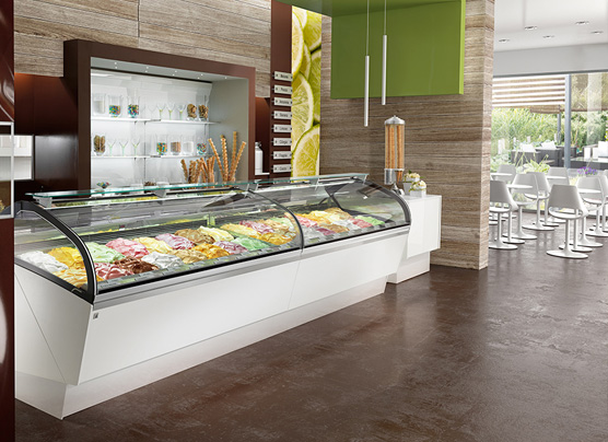 - izložbeni prostor pod nagibom od 9° omogućava savršenu vidljivost izloženog sladoleda
