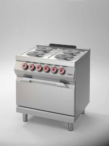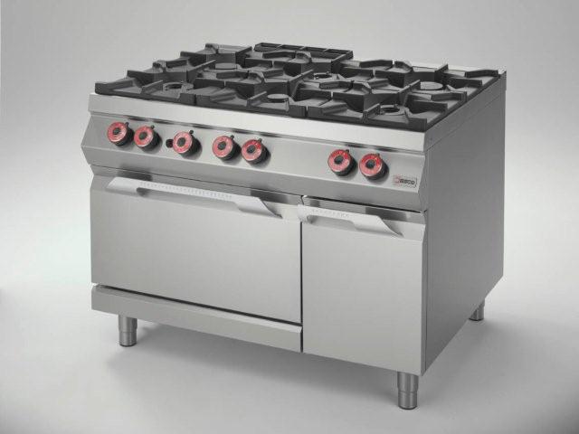 - plinski štednjaci sa plamenicima od 3.5, 5 i 8 kW, sa plinskom ili električnom pećnicom GN 2/1